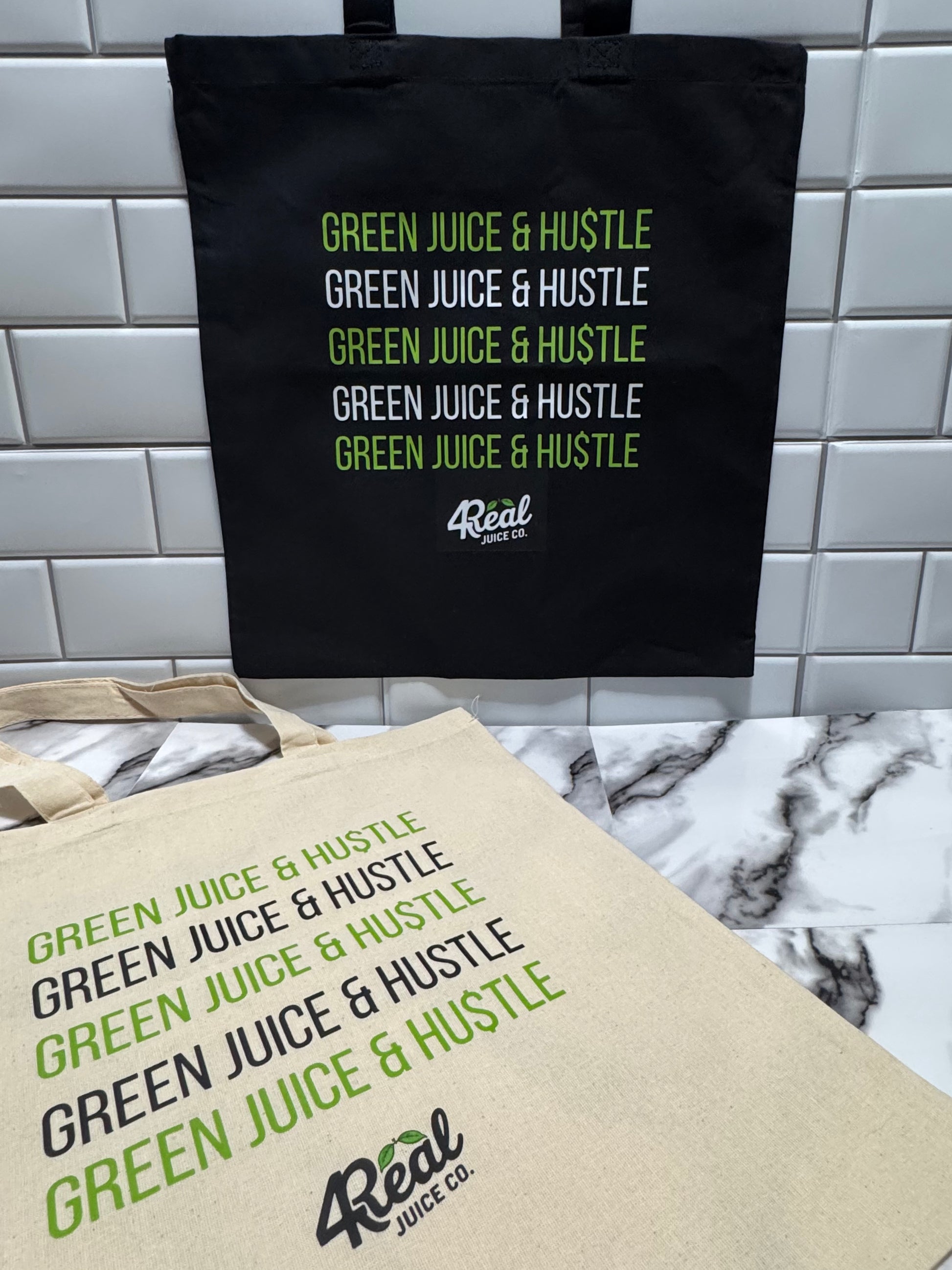 Carry your juice and essentials in style with our Green Juice & Hustle Tote Bag! This eco-friendly, durable, and spacious tote is perfect for grocery runs, gym trips, or everyday errands.